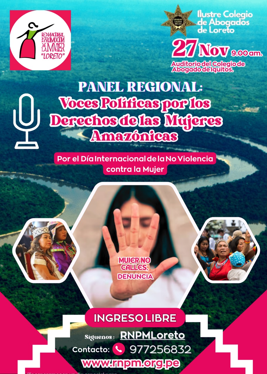 Frente a esta crisis estructural, la Red Nacional de Promoción de la Mujer – Filial Loreto anunció la realización del Panel Regional “Voces Políticas por los Derechos de las Mujeres Amazónicas”, un espacio de análisis y propuestas que reunirá a lideresas, especialistas y representantes de instituciones públicas.