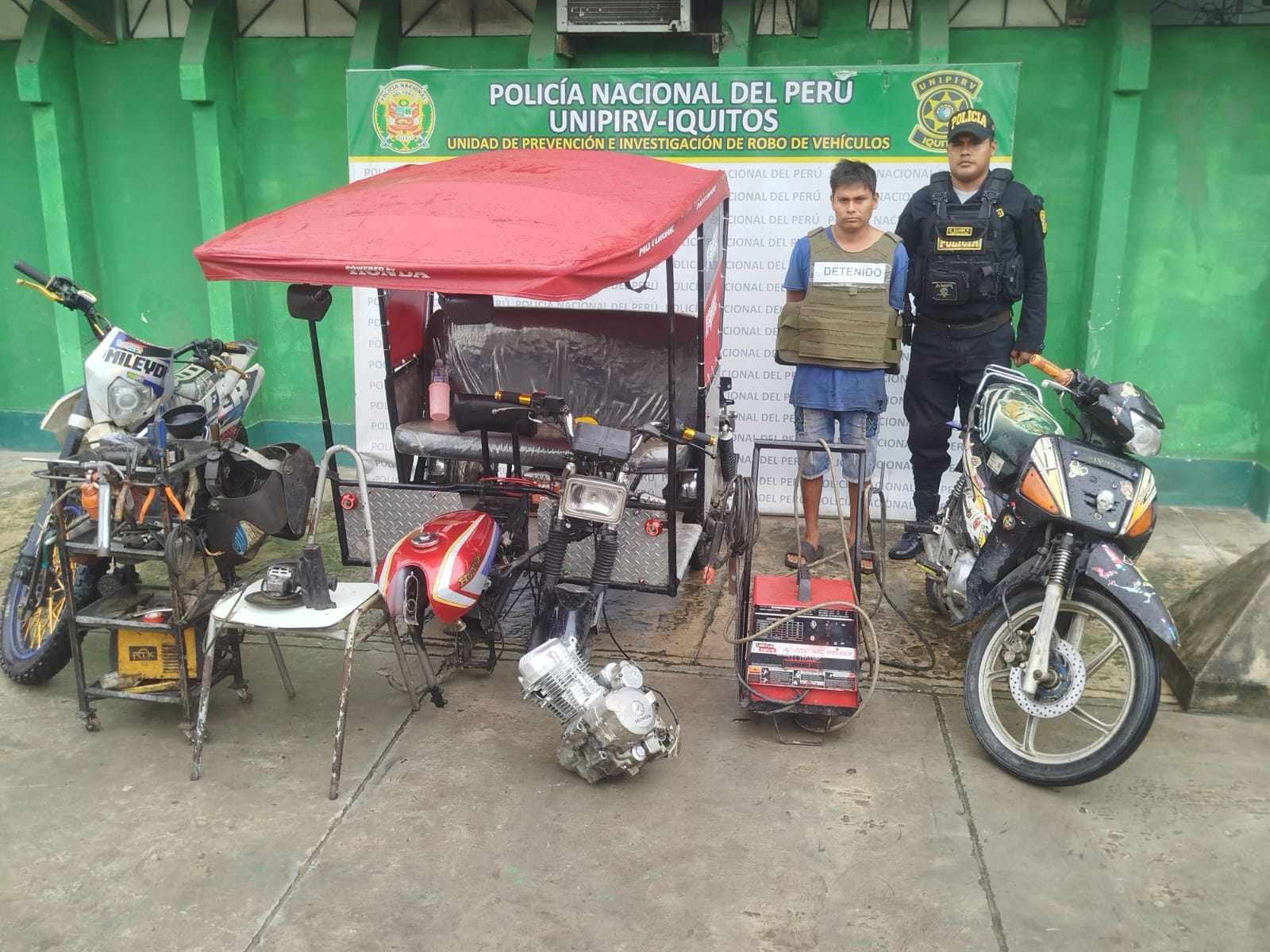 Durante la intervención en la vivienda, los agentes de la Unidad de Prevención e Investigación de Robo de Vehículos recuperó tres unidades, entre ellas dos motocicletas en proceso de manipulación y un mototaxi, que según la Policía, tenía una denuncia vigente por hurto, en diciembre del 2025.