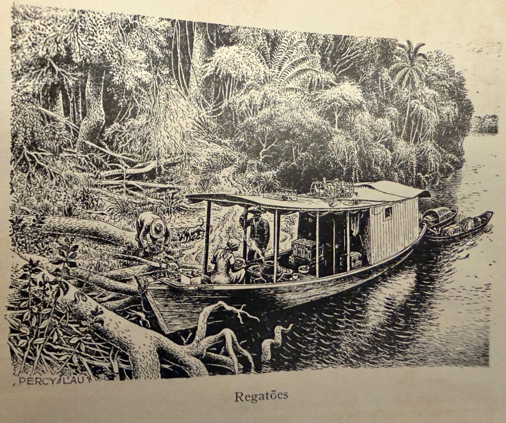 Desde fines del Siglo XIX la importancia de este negociador de los ríos ha sido determinante en una economía sustentada por la precariedad y la escasez de dinero. El personaje regatón adopta en la Amazonía brasileña una especial singularidad por su movilidad constante (usando un vehículo acondicionado a las exigencias del medio acuático ya sea una “galeota” o “coberta”) y por el intercambio de productos que transporta desde las ciudades que luego negocia (regatea) con productos naturales extraídos por indígenas y mestizos, incluyendo el caucho y la seringa. De dicho trueque de bienes se produjo un dudoso sistema crediticio debido a que mientras recorría pueblos distantes el regatón iba adquiriendo un destacado protagonismo y, al poner en contacto dos universos desconocidos, se constituyó a sí mismo en un sujeto bisagra, un personaje de gran importancia económica, social y cultural especialmente durante el boom del caucho. Un dato valioso es que los regatones no fueron necesariamente portugueses, sino también inmigrantes sirios, libaneses, turcos y judíos quienes transitaban los ríos comercializando productos de la “modernidad” mediante formas de crédito que funcionaban según las reglas circunstanciales de adquisición de bienes, como si fueran audaces y auténticos “piratas fluviales”, como los nombra la historiadora Barbara Weinstein. Samuel Benchimol, economista oriundo de Manaos, refiere que la contribución sirio-libanesa se produce en la Amazonía a partir del último cuarto del siglo XIX e inicios del siglo XX, cuando comenzaron a llegar una ola de inmigrantes desde diversos países del Medio Oriente a Belém, Manaos e interior de los Estados del Gran Pará y Acre y, una vez instalados en el comercio local, tuvieron una participación destacada en la economía y en la sociedad amazónica. Miles de ellos fueron regatōes. Benchimol añade que esos allegados dejaron sus aldeas de Damasco, Beirut, entre otras, para “arriesgar la vida y “mourejar” [trabajar mucho como un moro] en Belém do Pará, Manaos, Porto Velho, Rio Branco, en las riberas y en los altos ríos de la siringa”. Llegado de tan lejos, el personaje dejó de ser un inmigrante, se asimiló al medio ribereño y se convirtió en un producto social de su propia incursión individual en la actividad mercantil de los pueblos amazónicos. Transitando ríos y nuevas lejanías el regatón alcanzó protagonismo en Perú y Colombia donde prosigue su viaje que al parecer aún no termina.
